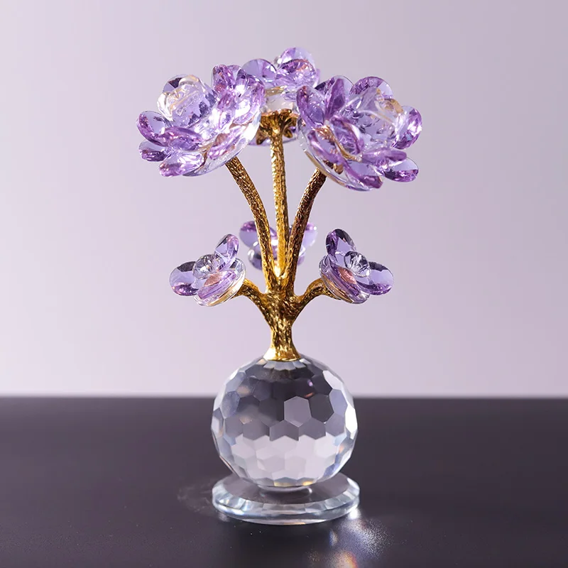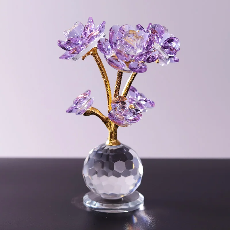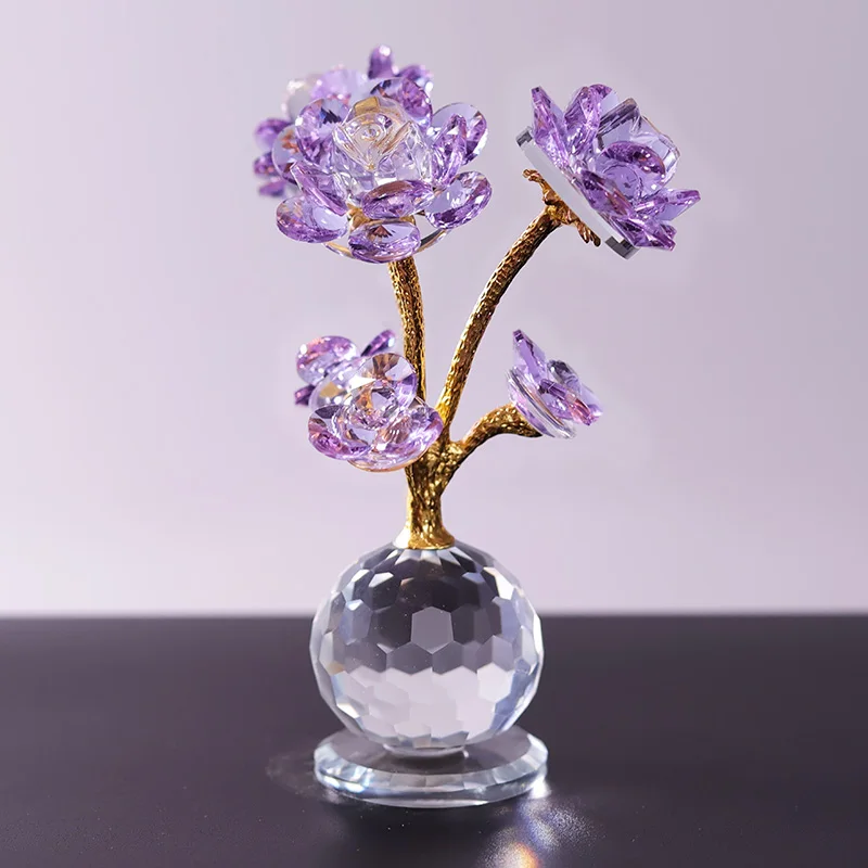 ديكور منزلي جديد إبداعي عبارة عن دعامة معدنية نموذج زهرة، قطعة زينة لسطح المكتب، عمل فني من الكريستال الزجاجي على شكل زهرة