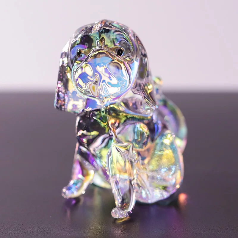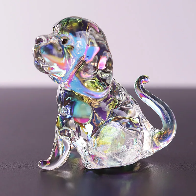 منتج جديد بالجملة، ديكور منزلي، أحدث صيحات الزينة، تمثال جرو من الزجاج الكريستالي بوضعية الجلوس