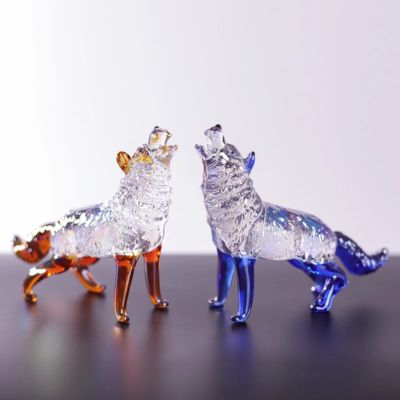 .Small Bridge بالجملة الأكثر مبيعاً ديكورات زجاجية شعبية هدايا حيوانات ذئب كريستال للهدايا التذكارية الحرفية