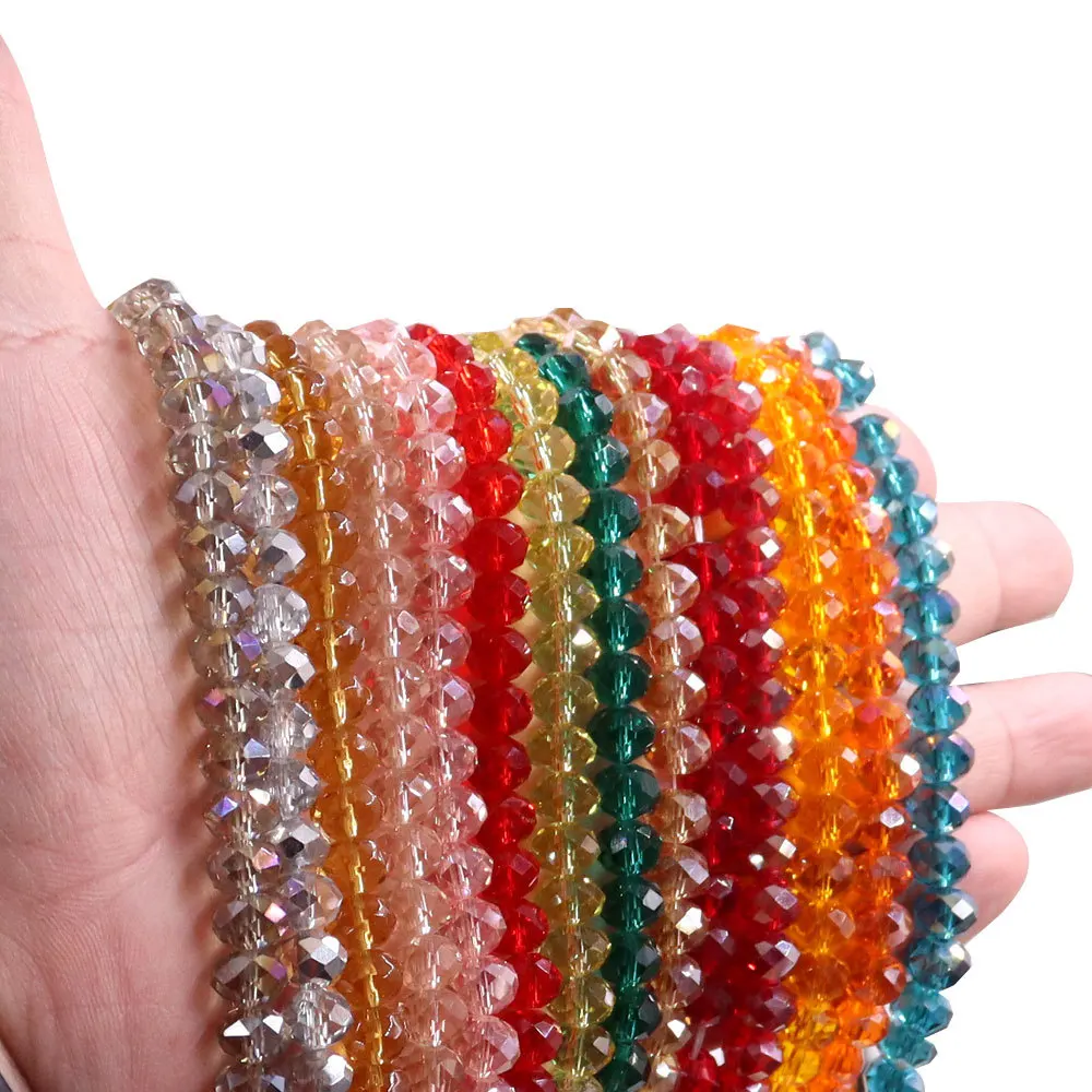 perles en verre cristal rondelle de 4 mm, 6 mm, 8 mm, en fil pour bijoux, perles libres en verre lampwork Matériau