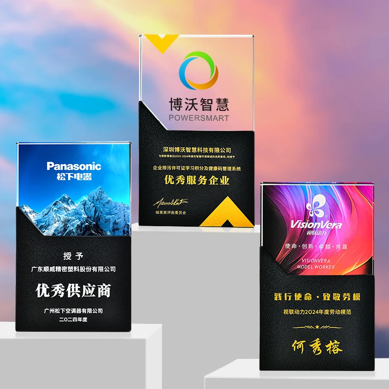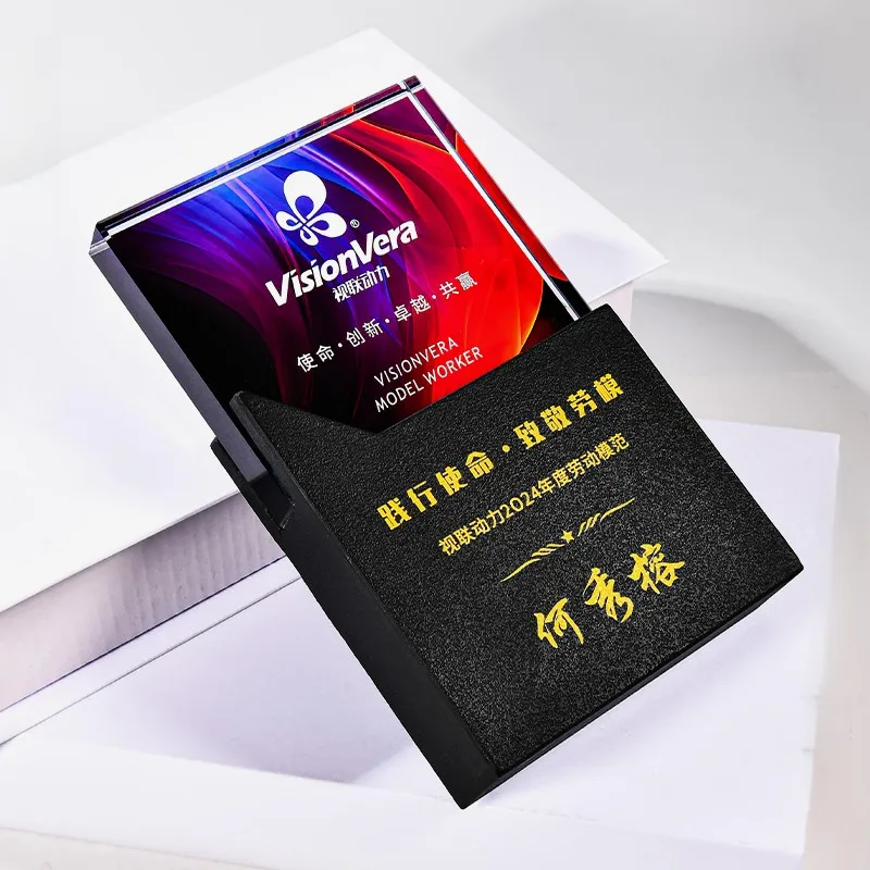 Trophée haut de gamme personnalisé en verre cristal couleur entière, base en pierre imprimée UV, design Small Bridge, trophées et plaques premium