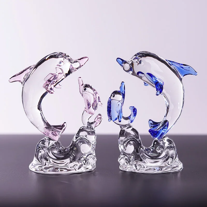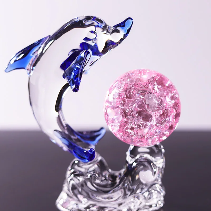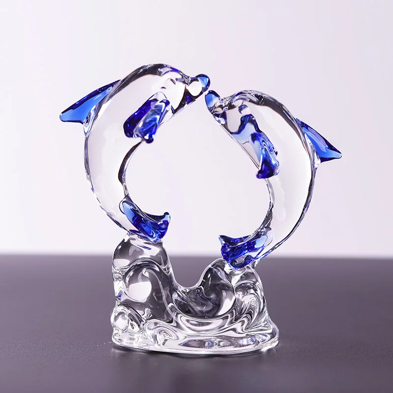 Nouveau produit, exquis et réaliste, décoration de bureau pour chambre ou salon, modèle de dauphin en verre cristal