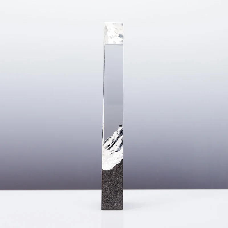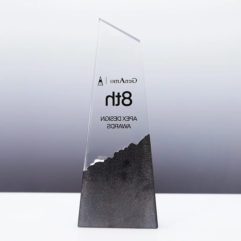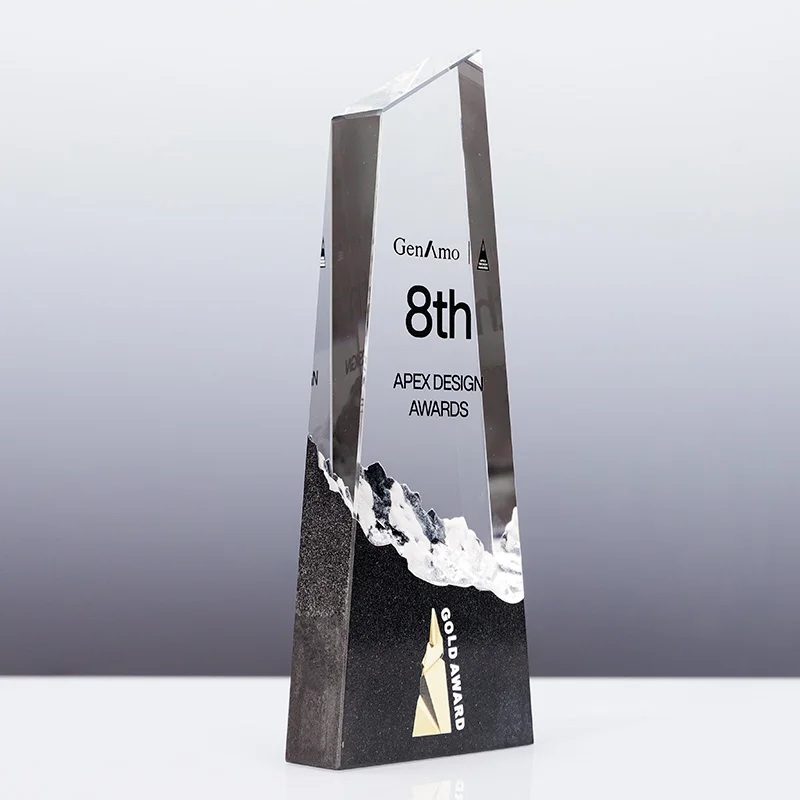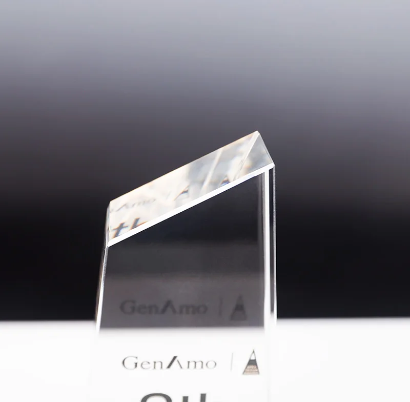 Petit Pont Trophée en Verre Cristal Transparent sur Base en Marbre Personnalisé avec Lettres du Logo Gravées au Laser, Nouveau Design, Vente en Gros