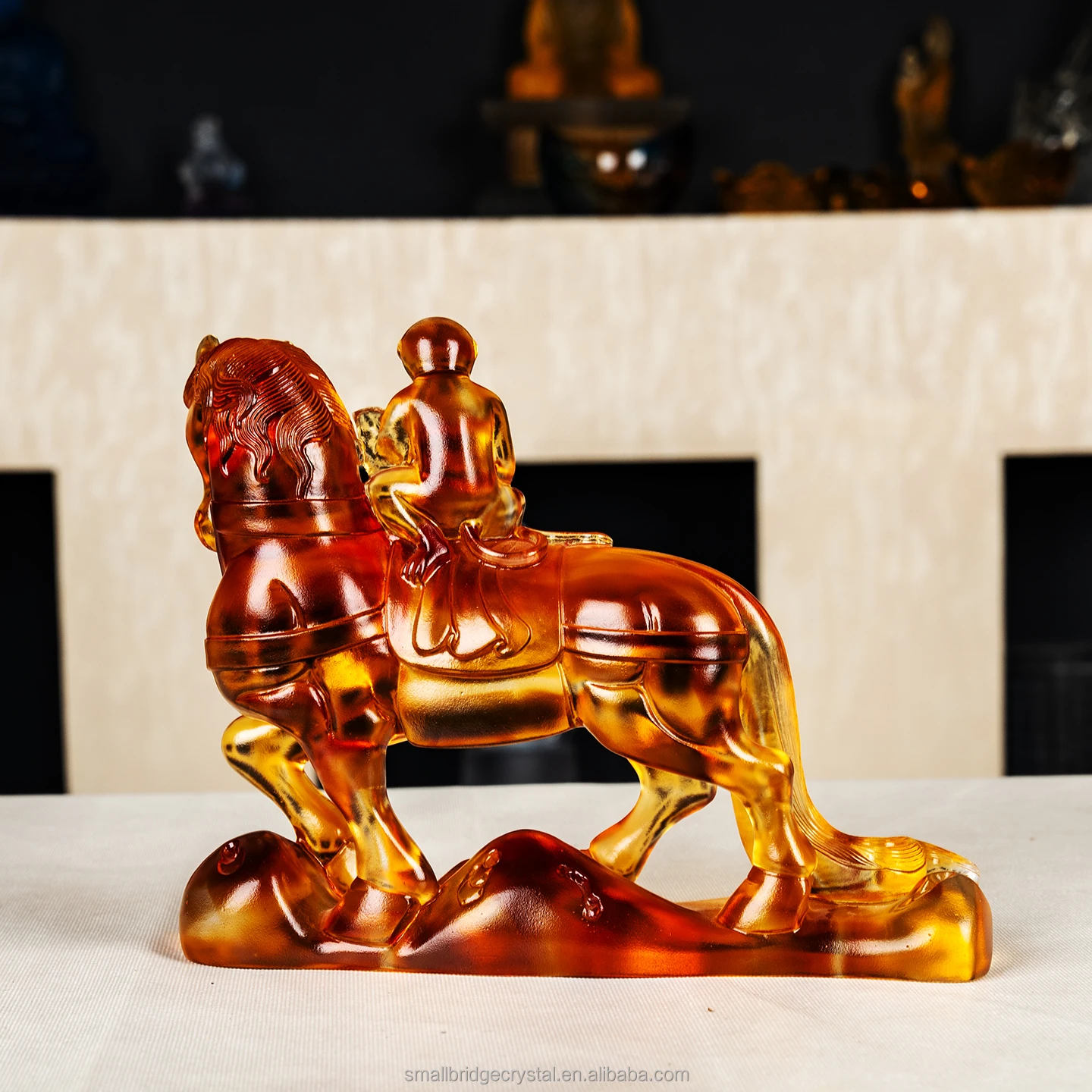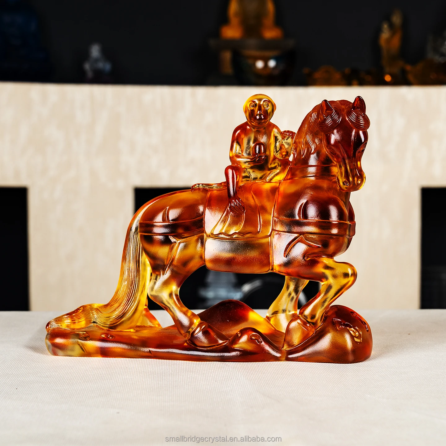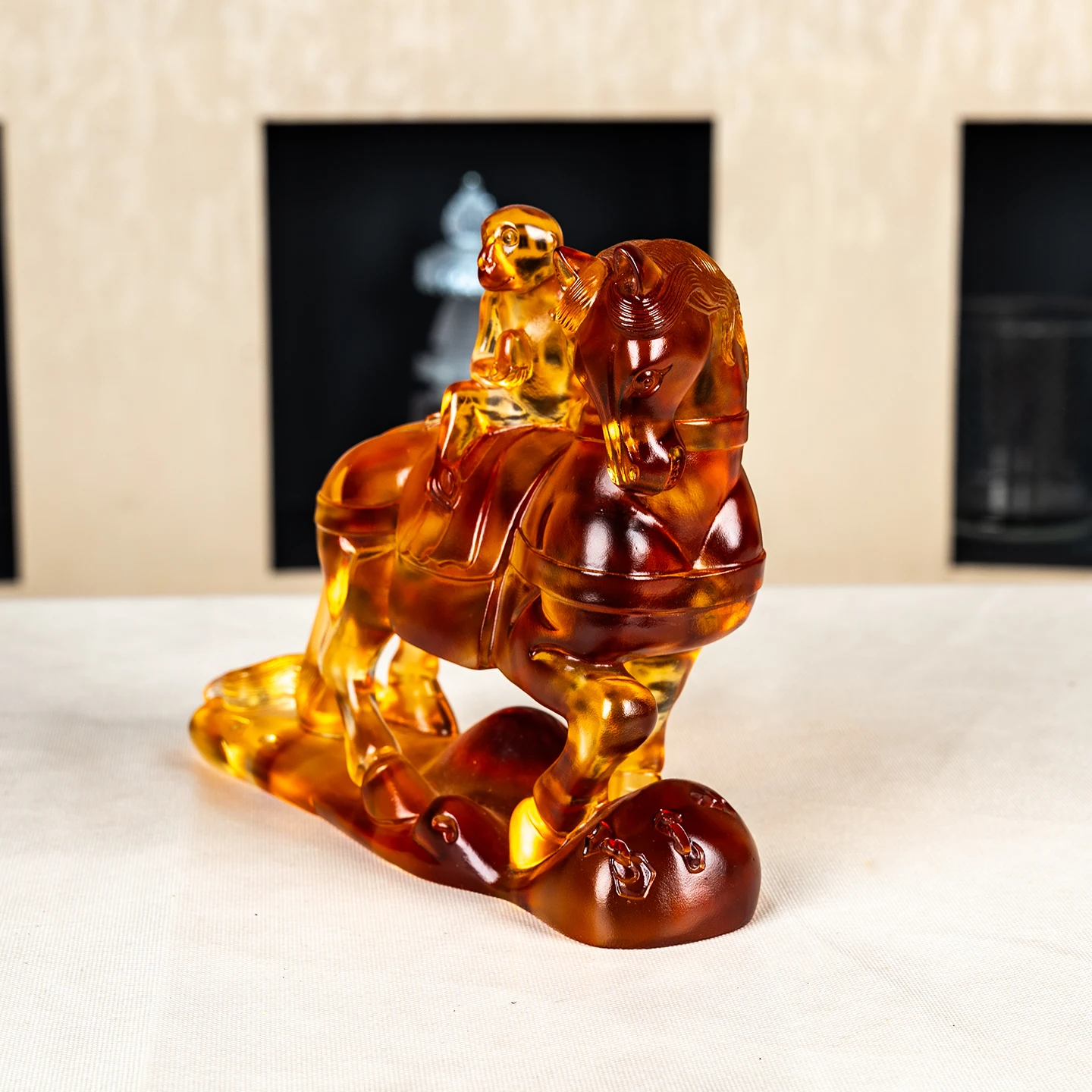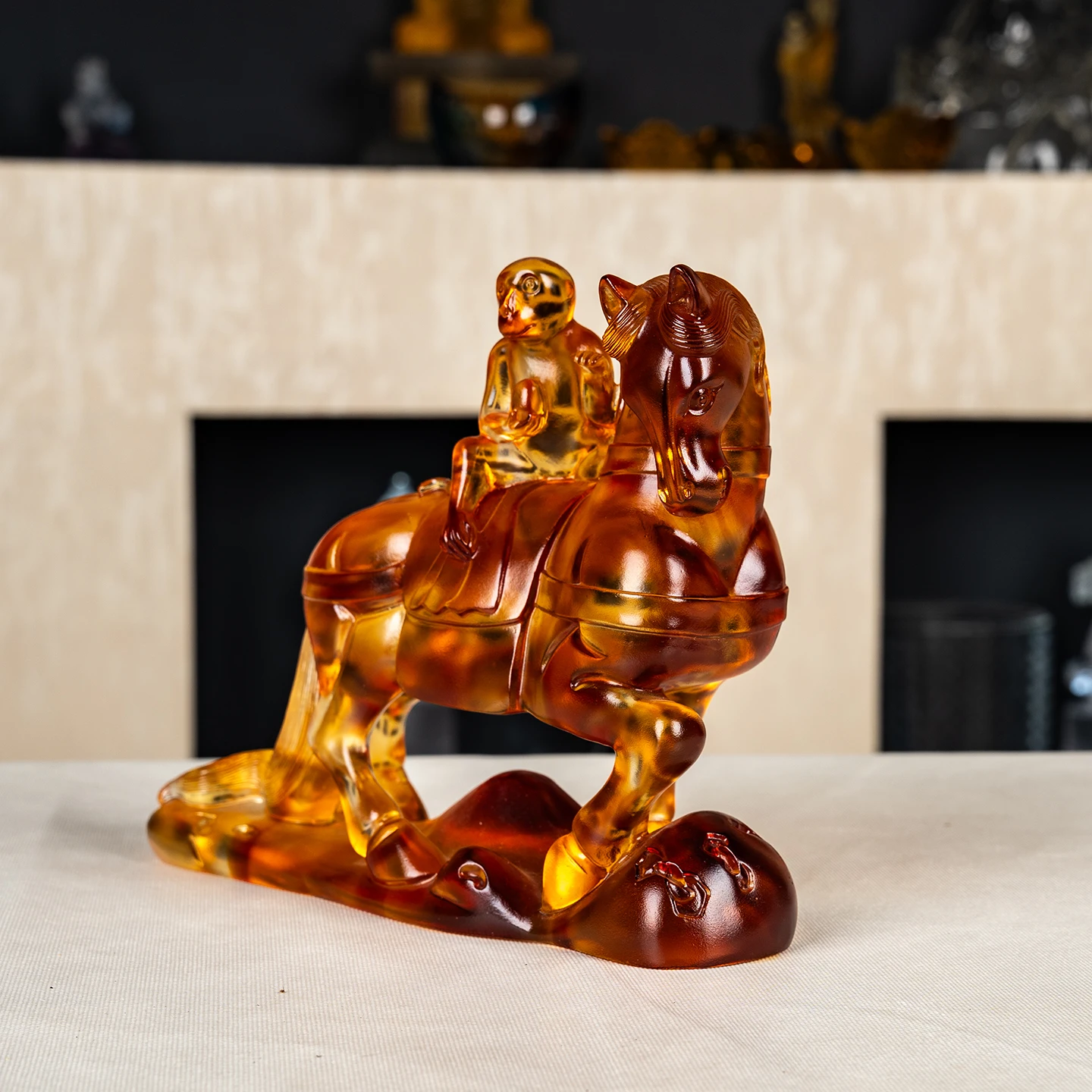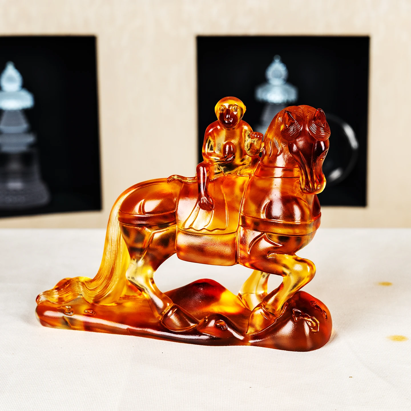Sculpture traditionnelle chinoise en cristal émaillé Cheval et Singe, décoration d'entrée pour salon, cadeau de bienvenue WDY-0413