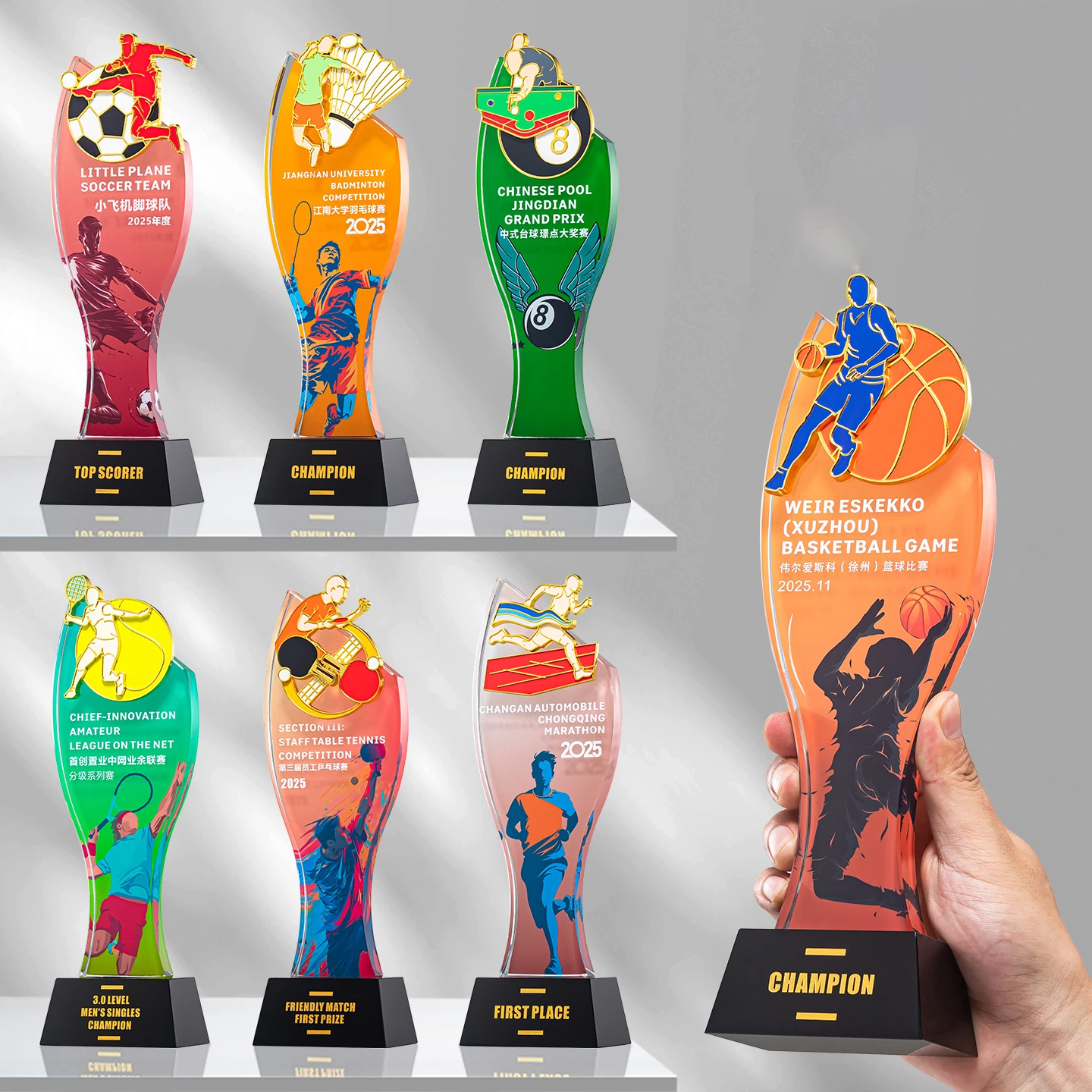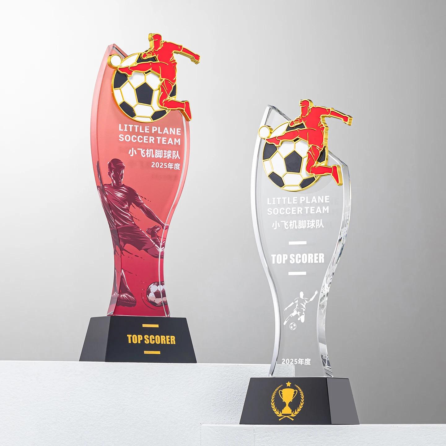 Vente en gros, livraison rapide, trophée personnalisé en cristal pour le football, médaille métallique avec impression UV, cadeau de bienvenue
