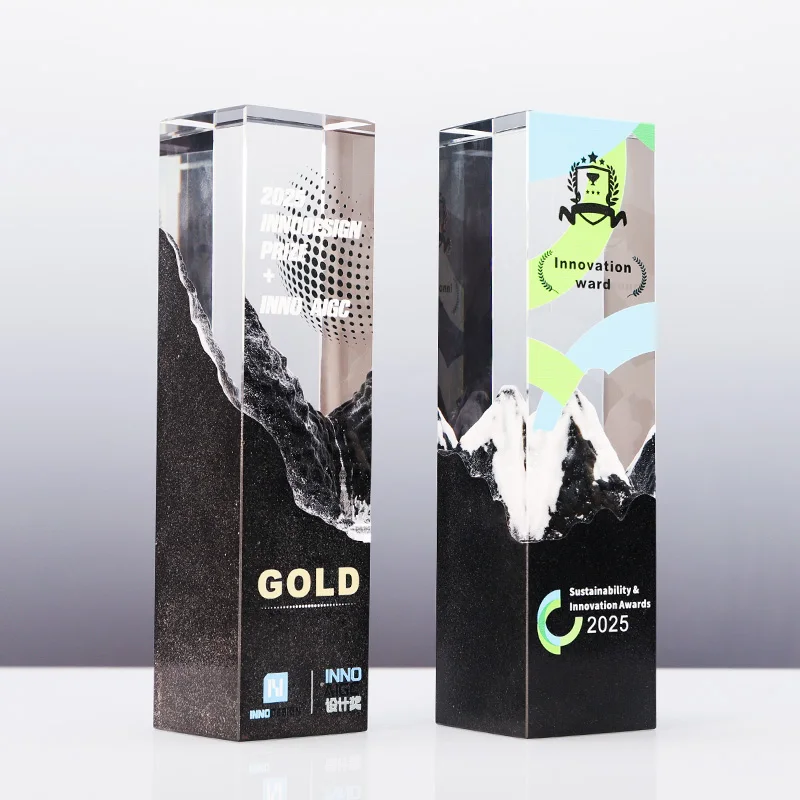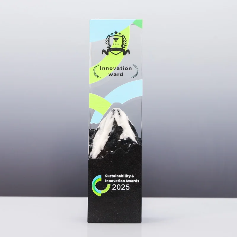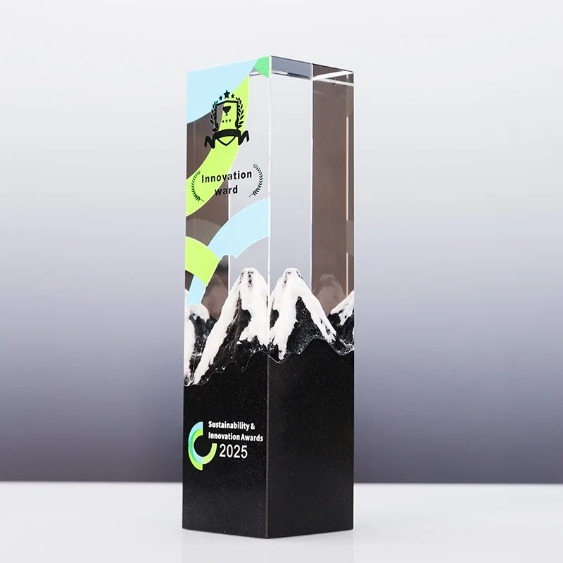 Prix et trophées en cristal K9, grès, design créatif Small Bridge, forme de montagne enneigée, personnalisables, création sur mesure