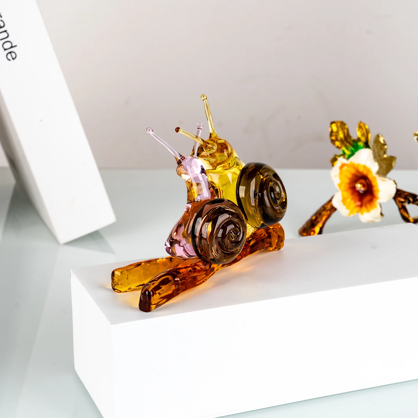 Handmade Crystal Glass Snail Sculpture Home Decoration Ornament Christmas Gift for Girlfriend Desk Decoration