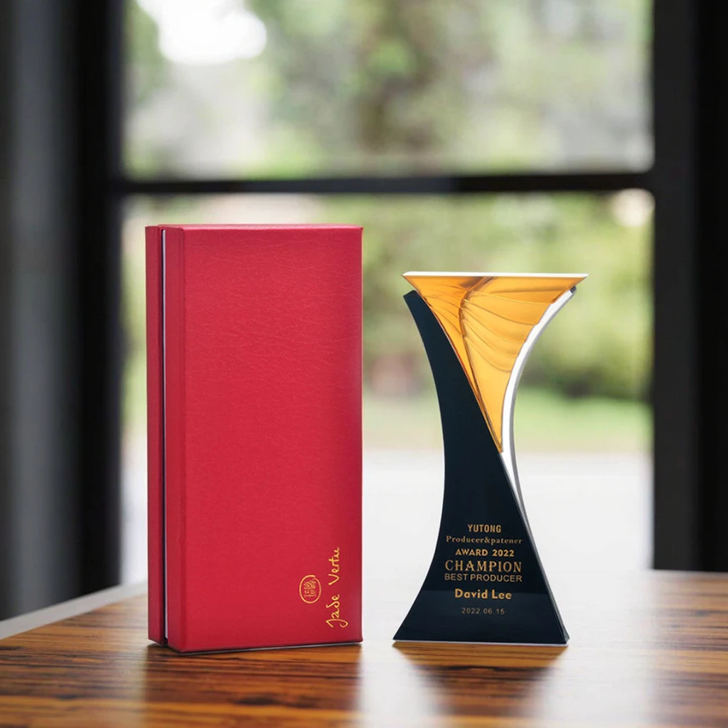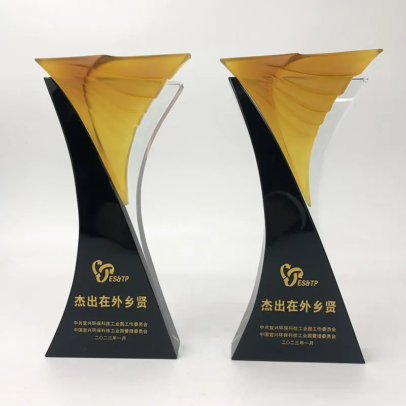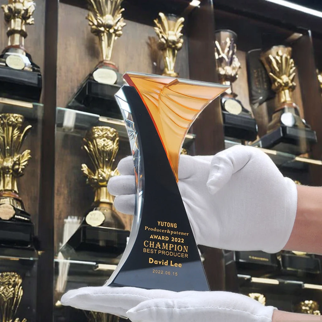 High-Grade Custom Excellent Staff Award Souvenir Gift Creative Plaques Insurance Tradeshow Liuli Crystal Trophy Awards