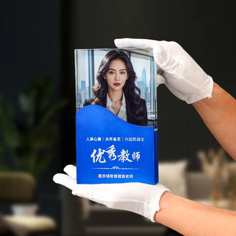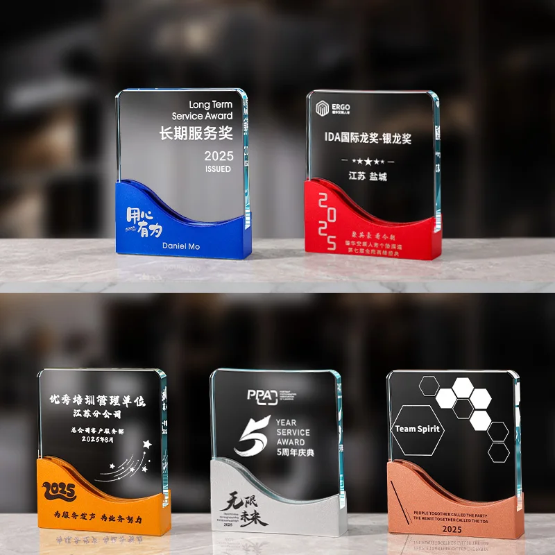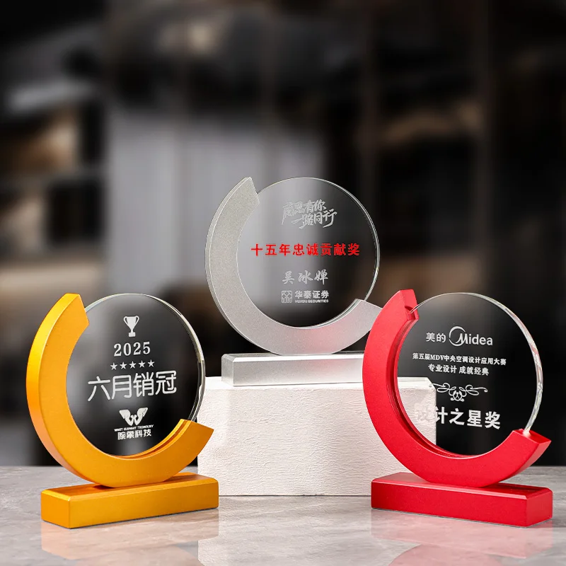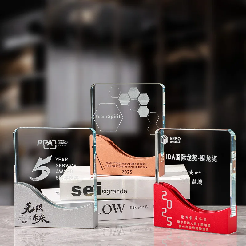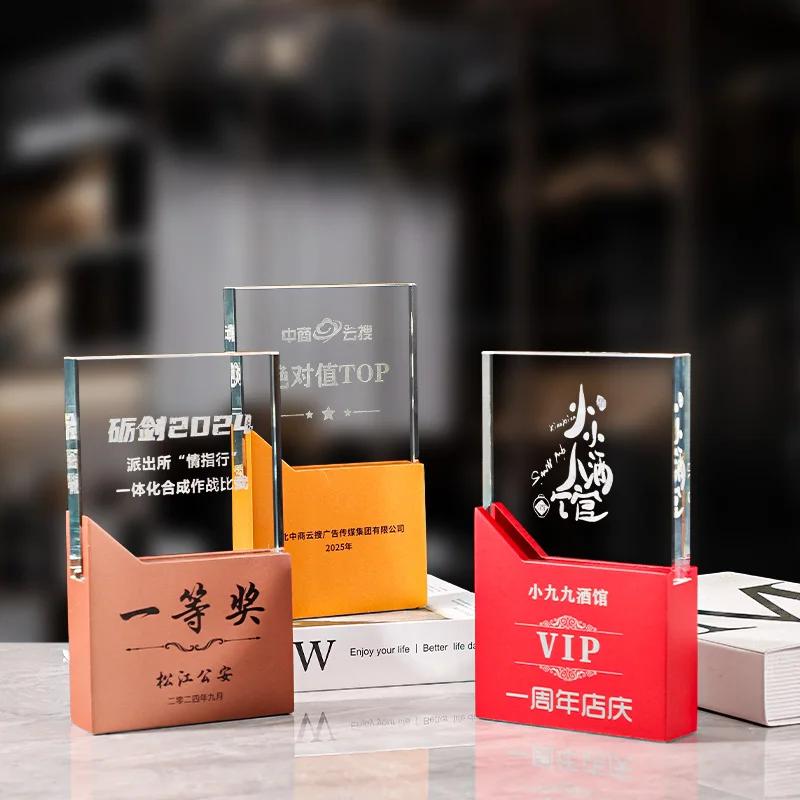 New Arrive Custom Personalized Different Colors Crystal Trophy Glass Award Wood Base Crystal Awards for Souvenirs Gift
