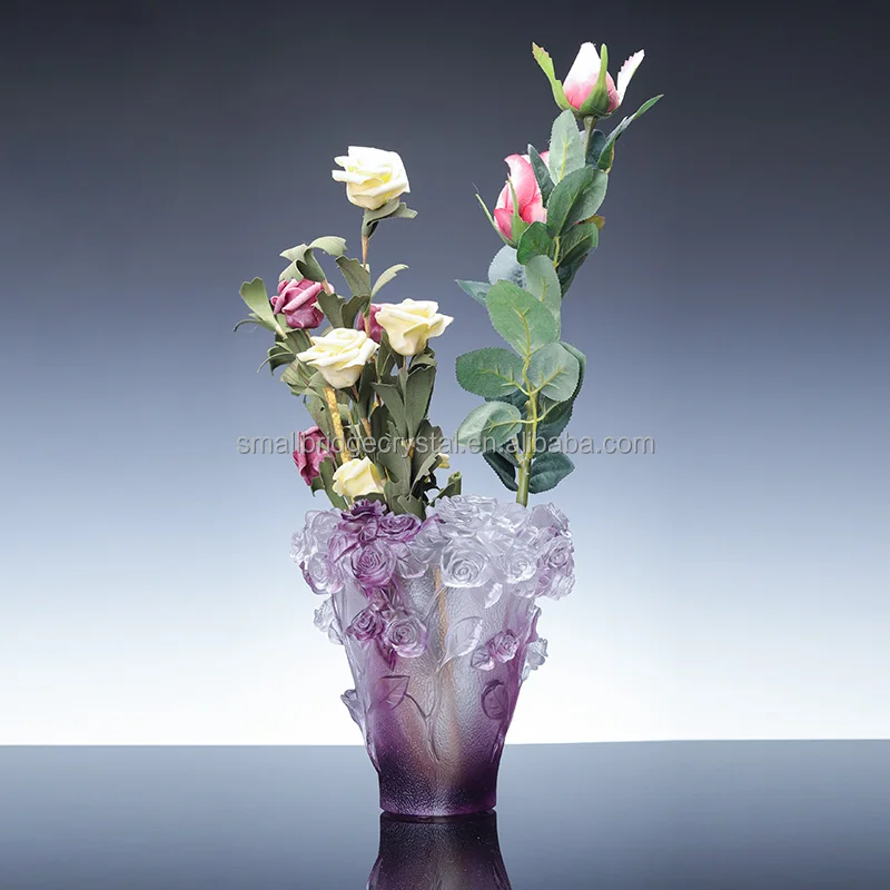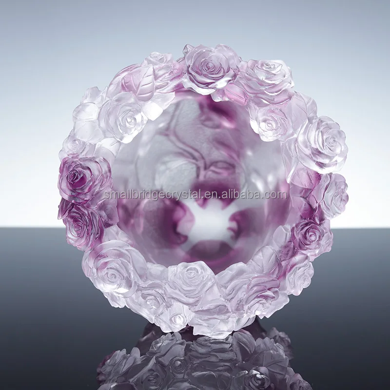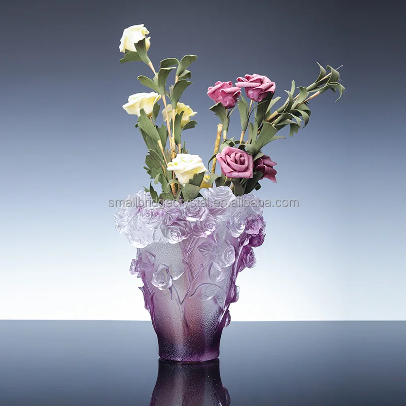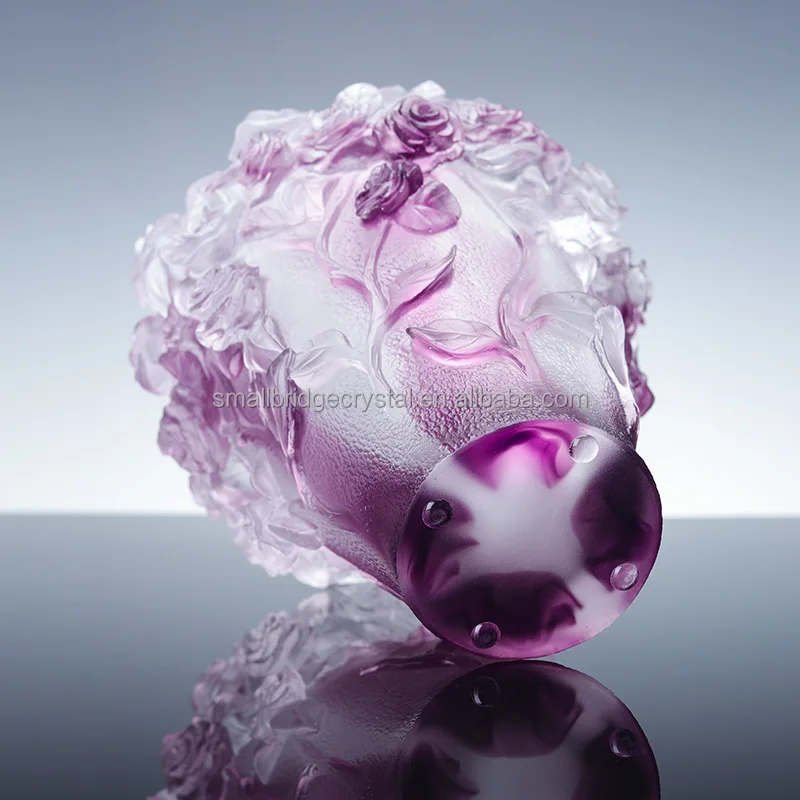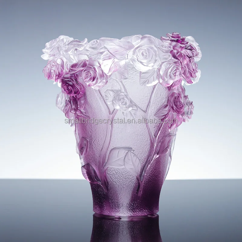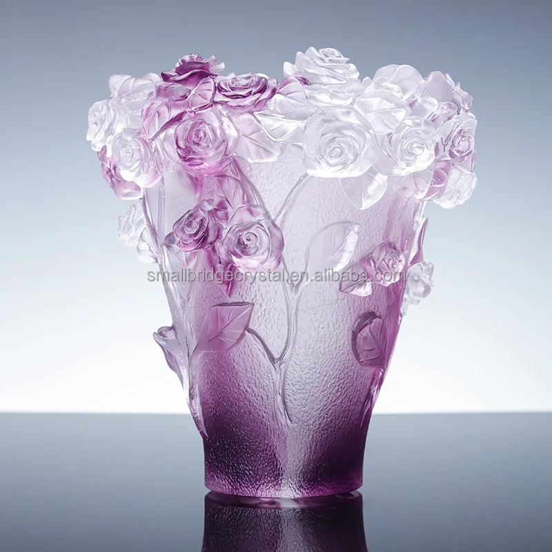 Small Bridge, designuri creative handmade, vas de lux din sticlă de cristal, cu flori reliefate de trandafir și camelia, veselă din liuli